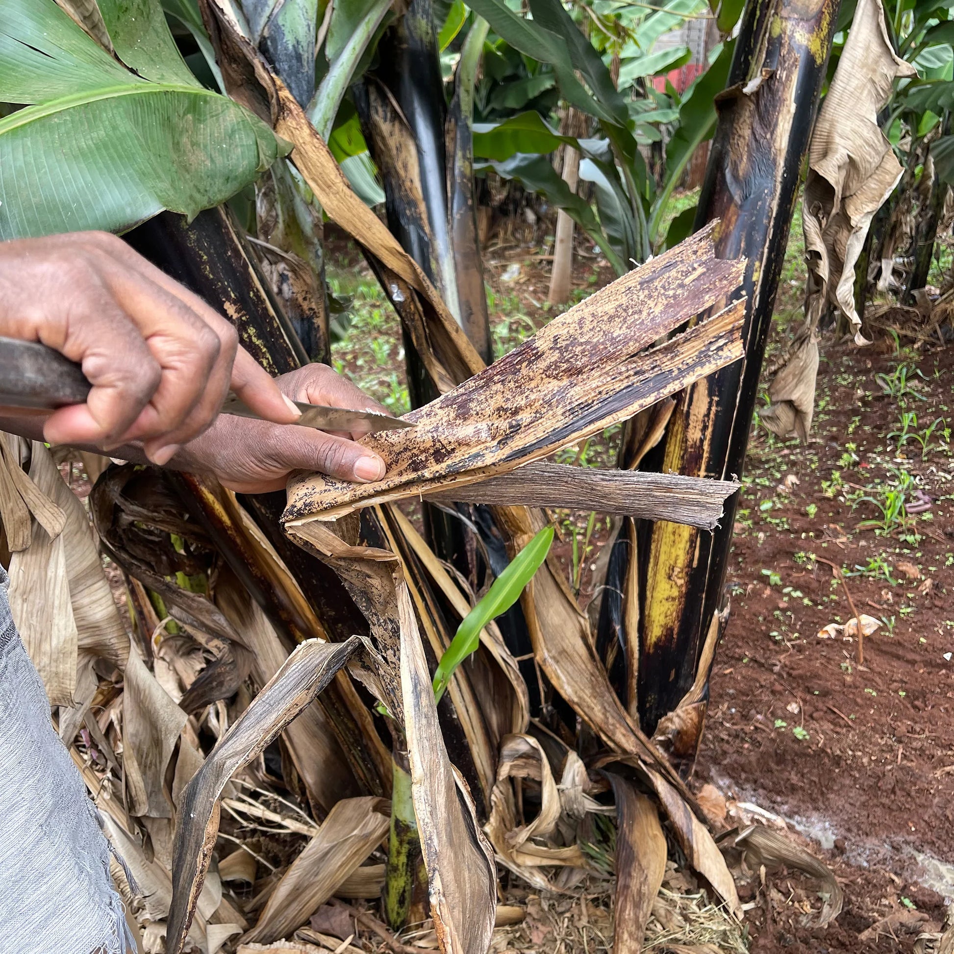 At the heart of Olivia's work lies a centuries-old tradition deeply rooted in Ugandan culture. For generations, banana fibre has been utilised by local artisans for its versatility and eco-friendly properties. Harvested from the stems of banana plants, this natural fibre undergoes a meticulous process of extraction and treatment before it's transformed into exquisite works of art.